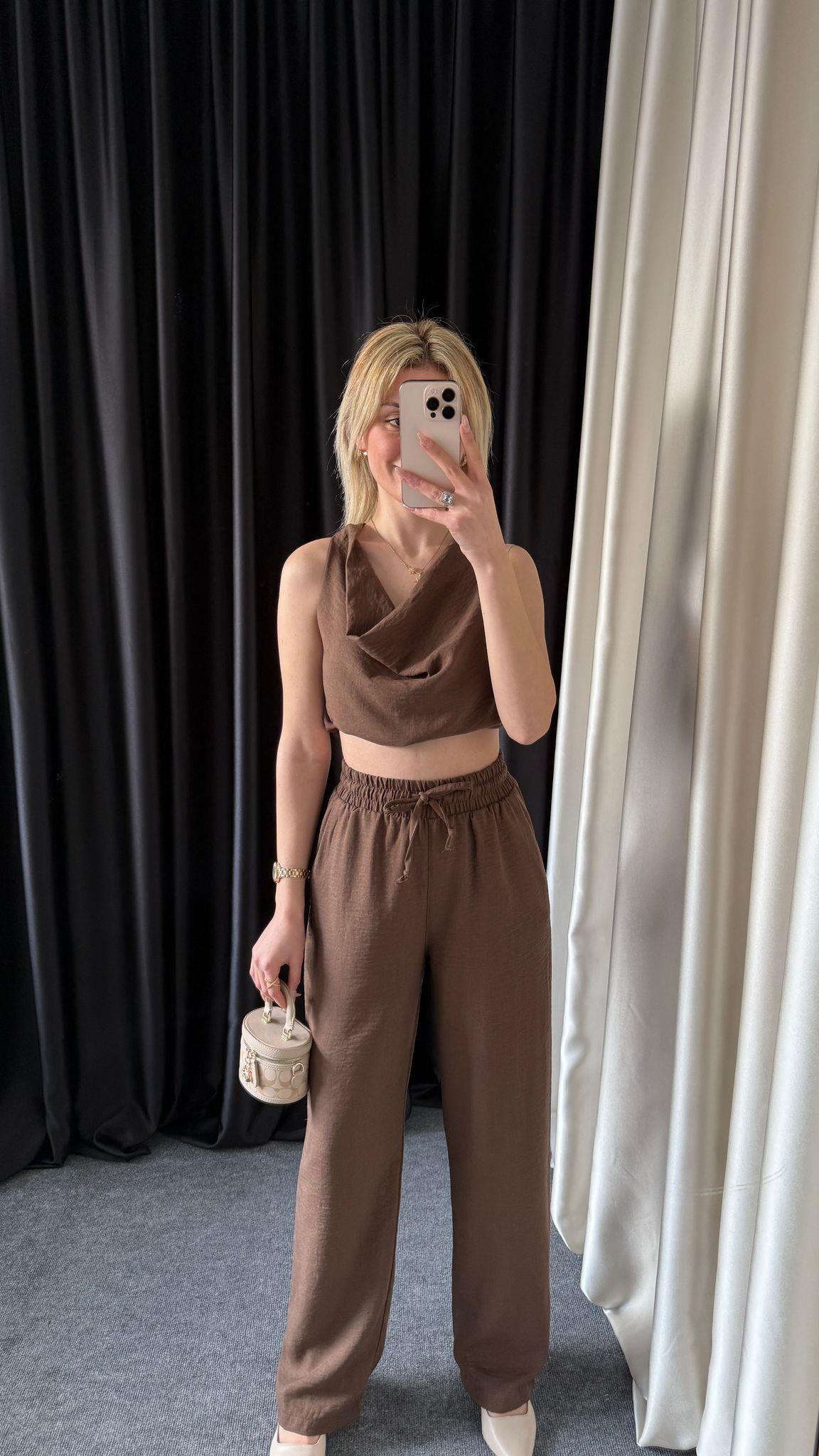 BAĞCIKLI CEPLİ KAHVE PANTOLON