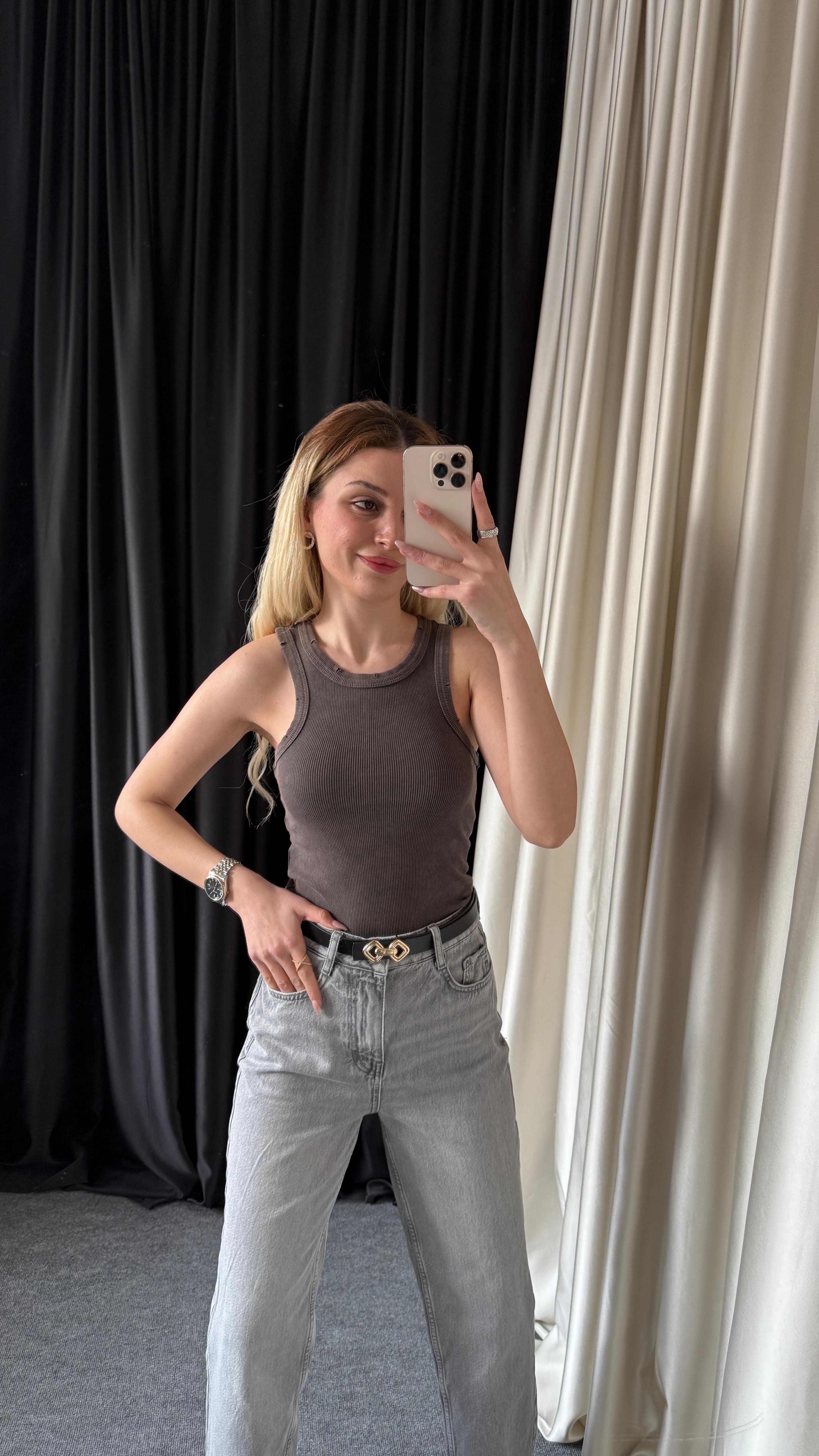 ESKİTME EFEKTLİ KAHVERENGİ ATLET